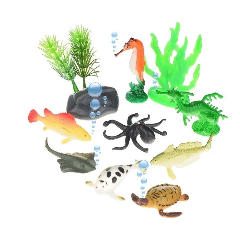 • В наборе: - 8 фигурок морских обитателей (от 4.5 до 6.5 см.) - имитация камня (5.5 х 3.5 см.) - 2 куста (6 см.) - водоросли (7 см.) • Материалы: пластик, ПВХ . • Соответствует требованиям безопасности продукции. • Для детей от 3-х лет. Высота игрушки: 3; Максимальный возраст ребенка: До 7 лет; Пол ребенка: Унисекс; Минимальный возраст ребенка: От 3 лет;