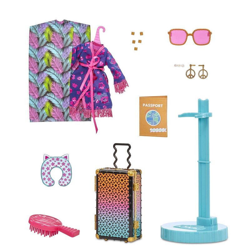 Кукла L.O.L. Surprise OMG Travel Doll Sunset - это мода, фееричный стиль и дух путешествий! Уникальный наряд этой красавицы вдохновлён национальным костюмом, а потрясающие аксессуары позволят вам мысленно перенестись в дальние края. Модельная кукла LOL OMG Sunset обладает детально проработанным образом, вплоть до макияжа и маникюра. Её длинные волосы заплетены в множество косичек, а современный модный наряд выполнен с элементами традиционной африканской одежды. У куклы - подвижные ноги и руки с несколькими точками артикуляции. Аксессуары выполнены в тематике путешествий. Есть даже чемодан! Всего вас ждёт 15 сюрпризов. Упаковка превращается в игровой стенд в виде пляжа на закате. Рост куклы: 25 см.