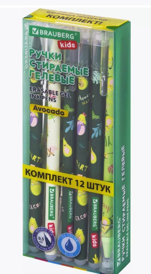 Ручка стираемая гелевая BRAUBERG KIDS "AVOCADO", СИНЯЯ, линия 0,35м, 144100
