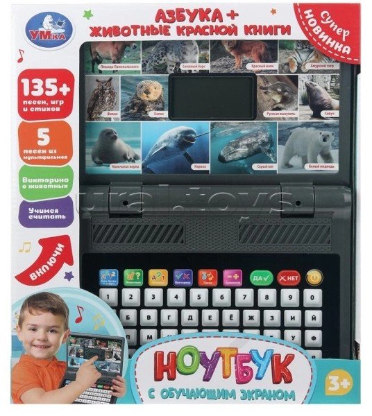 Ноутбук с обучающим LCD экраном 135+ песен, стихов и звуков. Компьютер с обучающим экраном «Азбука + Животные Красной книги» станет прекрасным подарком для маленьких любознаек.