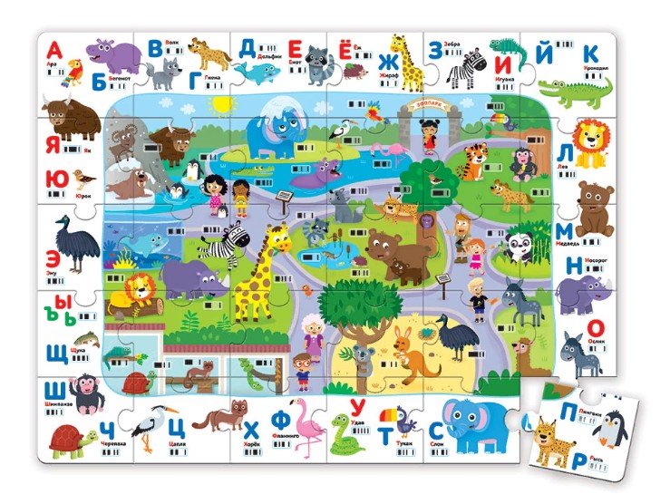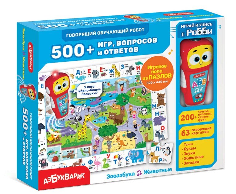 В игровом наборе «Зооазбука Животные» ребенок найдет говорящего робота со сканером штрихкодов и пазл из 30 элементов.