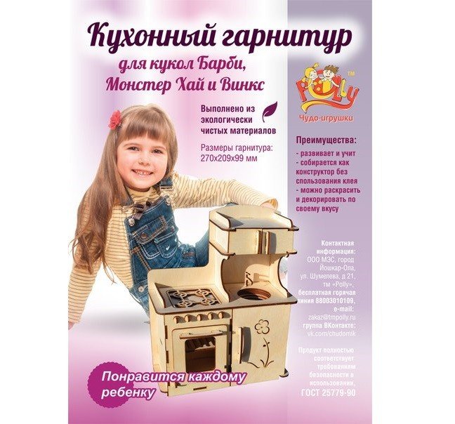 КУХОННЫЙ ГАРНИТУР прекрасно дополнит интерьер любого Кукольного домика. ПОЙДЕТ ДЛЯ КУКОЛ - ростом до 27 см Барби, Монстер Хай, Соня Роуз, Братс, Винкс, Мокси, Евер Афтер Хай. Не нужно ничего вырезать ножом или склеивать, как у других! Поставляется в разобранном виде, собирается как конструктор, в пазы. ПРЕИМУЩЕСТВА - Каждая деталь отшлифована. Детали чистые - без пыли, грязи и заусенец. Безопасно для детей. Фирменная упаковка. Инструкция по сборке.