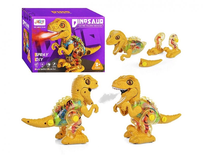 Издает звук рык динозавра и воспроизводит мелодию без слов.