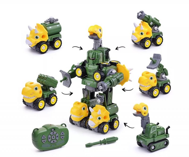 DIY-набор из пяти машинок, которые можно объединить в одного робота.