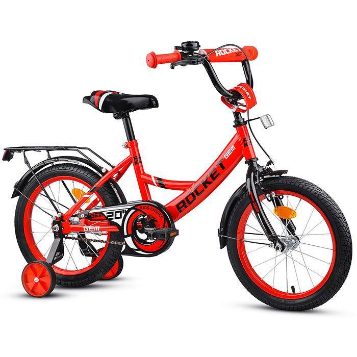 Велосипед детский двухколесный 12 дюймов с боковыми тренировочными колесами Rocket Gem, цвет красный 12.R-GEM.RD.24 ROCKET