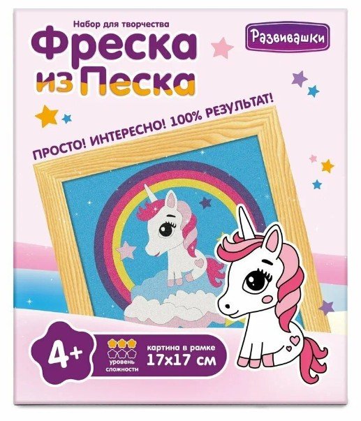 - Фреска из цветного песка "Единорог на облаке" С1902