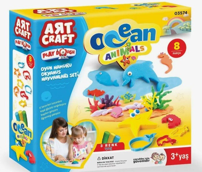 Познаем водный мир вместе с ТМ "AЯT CRAFT". Мягкое пластичное тесто не липнет к рукам и хорошо формируется. в наборе: тесто 3 цвета по 50г, формы 8 шт. Моделируем, фантазируем, смешиваем - все что так любят дети! Тесто безопасно для детей и не токсично. Состав теста для лепки: мука, соль, вода, пищевые красители. Подходит для детей от 3 лет.