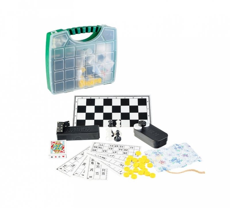 - Набор из 6 игр "В Путь-Дорогу" в пластиковом чемоданчике (шахматы обиходные пластик., лото пластик с