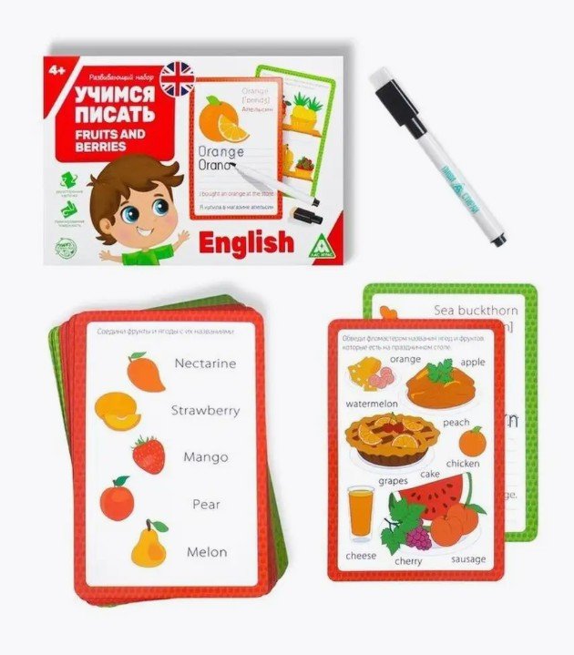 Развивающий набор пиши-стирай «Учимся писать. Fruits and berries», 15 карт, 4+ 6914390