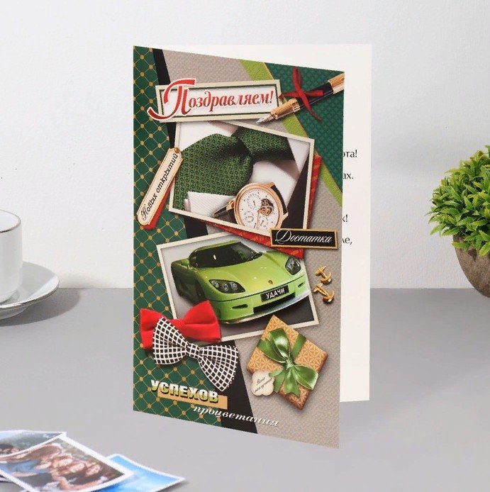 Открытка "Поздравляем!" машина, зеленый фон, А5 9622039