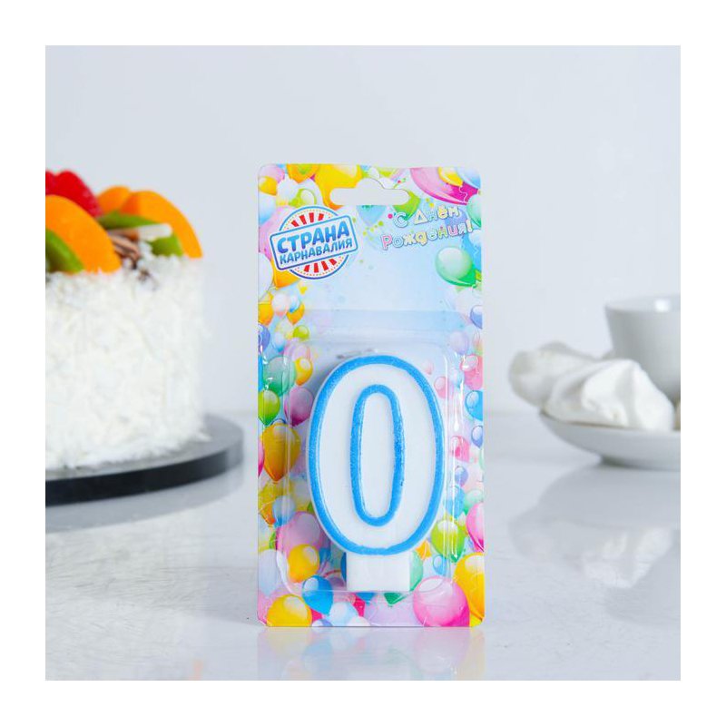 Свеча воск д/торта цифра "0" ободок цветной, МИКС